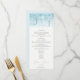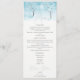 Hochzeitsmenü mit Aquareller Winterlandschaft in Blautönen. Im Zentrum stehen zwei Bäume, die mit einem schneebedeckten Frosthaze bedeckt sind, die Äste der Bäume bilden ein dünnes Netz gegen den Himmel und dehnen sich im Winter in zauberhaftem Rahmen aneinander, was für viele Jahre eine Idylle schafft. Winterfrische zartes Hochzeitsmenü. Winter Freshness Collection