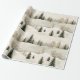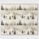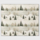 Eine friedliche Winterlandschaft mit schneebedeckten Hügeln mit verstreuten immergrünen Bäumen und Laubbäumen mit nackten Ästen. Schneeflocken fallen sanft ab und schaffen eine weiche, beruhigende Atmosphäre. Die Farbpalette ist in Weiß-, Grau-, Grün- und Brauntönen gehalten.