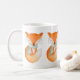 Fun wiederholen Winter roten Fuchs in einem Schal verpackt und mit seinem Schwanz Aquarellmalerei auf weißem Schnee Hintergrund. Ideal für die Liebhaber von Weihnachten oder Winterfuchs. Aquarellmalerei und Design von Sarah Trett.