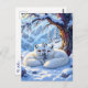 Ein süßer Winter Füchse themed Weihnachten oder Happy Holidays Postcard. Eine süße Illustration von zwei weißen Füchsen, einer Mama und einem Baby, die unter einem Baum im Schnee kuscheln. Auf der Rückseite können Sie Ihre eigene personalisierte Nachricht.