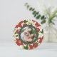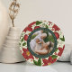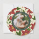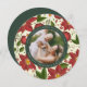 Elegante Ferienfotokarte in einzigartiger runder Form mit einem beliebten Foto auf einem Hintergleppchen von lebhaften roten Poinsettia-Blume, grünem botanischem Blattwerk und winzigen weißen Blüten. Personalisieren Sie mit einem individuellen Feiertagsgruß (gezeigt mit "haben Sie sich ein fröhliches kleines Weihnachten"), Ihren Namen, und das Jahr, in Weiß auf einem Kreis von Jägern grün.