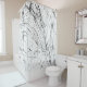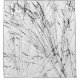 Schwarze Stiele aus trockenem Federgras vor dem weißen Hintergrund schneebedeckter Erde. Das Durcheinander gepflegter Linien erinnert an den zeichn von Stift und Tinte. Geometrie der Wintersaison. Drucke und Geschenke für jeden zum Spaß und gute Laune. Duschvorhang zu dekorieren Ihr Badezimmer für Spaß und gute Laune.