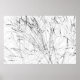 Schwarze Stiele aus trockenem Federgras vor dem weißen Hintergrund schneebedeckter Erde. Das Durcheinander gepflegter Linien erinnert an den zeichn von Stift und Tinte. Geometrie der Wintersaison. Drucke und Geschenke für jeden zum Spaß und gute Laune. Wallart, Print, Poster, Leinwand zur Dekoration Ihres Zimmers oder Büros