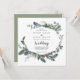 Dieses Wintergrün lädt zu einer informellen Hochzeit ein. Das moderne Herbst- oder Winterdesign besticht durch seine elegante Aquarell-Vegetation und die Oliven-Eukalyptus-Blätter mit einem rustikalen Urlaubsstil.