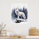 Dieses beeindruckende Aquarellstück zeigt einen arktischen Wolf stehend auf einer schneebedeckten Aussaat mit einem Hintergrund von unsicherer, bewaldeter Wildnis. Die Haltung und der warme Blick des Wolfs verkörpern den Geist der Wildnis und die Widerstandsfähigkeit, die notwendig ist, um in einem so harten Klima zu überleben. Es ist ein inspirierend Portrait für diejenigen, die die ungezähmte Schönheit der Natur bewundern und die edlen Kreaturen, die darin wohnen.