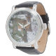 Uhr, Klassische Damenuhr mit schwarzen Lederarmband