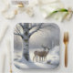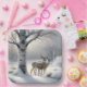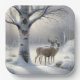 Winterhirsche mit Herz auf Birkenbaum Pappteller