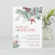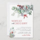 Eine stilvolle Hochzeitseinladung mit Aquarellbildern in Rot- und Grüntönen und einem modernen Schriftart. Diese elegante Einladung ist einfach zu bearbeiten und ist perfekt für eine Winter- oder Weihnachtsfeier. Pair mit allem aus der Kollektion NOELLE für ein einheitliches Aussehen.