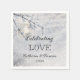 Elegante Papierservietten mit einer Kerzenleuchte in glitzerndem Schnee. Schön für eine Winterhochzeit.