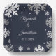 Winterhochzeit mit blauen Schneeflocken Pappteller