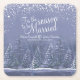 Winterhochzeit Pinienbäume See blaues Kunstpapier trinkt Untersetzer. Hochzeitskiefernbäume am See mit weißen Schneegurken und Aquarellpapier-Untersetzer. Personalisieren Sie Ihre eigenen Hochzeitsdetails. Ideal für eine Weihnachtsfeier oder eine Winterhochzeit am See. Weitere passende Elemente verfügbar. © Original painting and design by Sarah Trett www.sarahtrett.com for www.mylittleedenweddings.com
