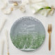 Winter Hochzeitsgrün Kiefernbäume See Kunst Papier Teller. Winterhochzeit graue, grüne und weiße schneebedeckte Pinienbäume, die von den Seen-Art-Servietten umgeben sind. Personalisieren Sie Ihre eigenen Hochzeitsdetails. Ideal für eine Weihnachtsfeier oder eine Winterhochzeit am See. © Original painting and design by Sarah Trett www.sarahtrett.com for www.mylittleedenweddings.com