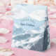 Diese wunderschöne Gastgeschenk Hochzeit-Box zeigt ein kraftvolles Foto von schneebedeckten Bergen im Winter. Fügen Sie Ihre Namen in blauer Schrift über die schneebedeckten Hügel. Perfekte Fotografie für eine kalte Wetterhochzeit.