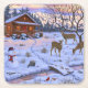 Winterhütte Hirsch im Schnee Weihnachtsszene Rechteckiger Pappuntersetzer