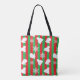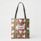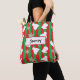 Personalisierte Niedliche Urlaubstasche mit weißen Schneeflocken, roten und grünen Streifen, weißen Fingern und Winterhütten.