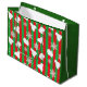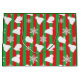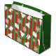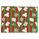 Weihnachtsbeutel mit rotem und grünem Hintergrund, weiße Fäustlinge, Hüte und Schneeflocken.