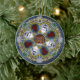 Jugendstil-Bögen umschließen die farbigen Glasschichten dieser Mandala mit Kamin, Poinsettias, Schneemännern und Polarlichtern in coolen Farbtönen, um die Gefühle der Kälte, die mit dem Winter kommen, voll zu verkörpern.