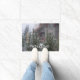 Eine einladende Schneeszene der Winterhütte in Whistler, Dorf B. C. Whistler, ein Skigebiet in B.C. Die Nachricht "Willkommen" kann nach Wunsch geändert werden.