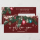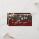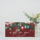 Modernes Logo-Geschenkgutschein mit festlichen Weihnachtsbeleuchtung grüne Kiefernäste Schnee mit niedlicher Abbildung von Glitzer Weihnachtsbällverzierungen, grüne Aquarellkiefer-Äste, Misteloe, Kiefernzapfen, Streichmärchen auf bearbeitbarem dunkelrotem Hintergrund. Bereiten Sie sich auf die Shopping-Saison und Weihnachten. Perfektes Geschenk für jeden! Fügen Sie Ihr Logo hinzu.