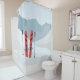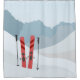 Abstrakte Winterlandschaft mit Panoramablick auf die Berge, rote Skiausrüstung, Pfad und Himmel