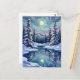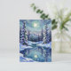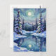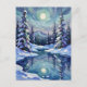 Eine ruhige Landschaft mit einem ruhigen, gefrorenen Teich mit glühendem Vollmond und schneebedeckten Kiefern. Die Aquarellfarben sind reich an Indigos, Lavendeln und gedämpften Grüntönen, mit subtilen Weißnuancen. Das Pinselwerk ist weich und gemischt und schafft eine traumhafte Qualität. Die Reflexionen werden in einem malerischen Unschärfe dargestellt, der der Szene ein Gefühl von tiefer Stille und der bezaubernden Umarmung des Winters gibt.