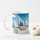 Winterlandschaft im Abend mit Schnee bedeckt Kaffeetasse