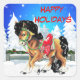Winterschneeszene mit einem Pony mit rotem Sattel und einem Zaun im Hintergrund. Der Text, der Happy Holidays sagt, kann geändert werden, wenn Sie einen anderen Gruß bevorzugen. Sehen Sie andere Western-Urlaubsprodukte im Rodeo Days Store.