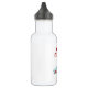 Eine Wasserflasche mit einem digitalen Bild einer bemalten Abbildung einer roten Kirche und eines steilen Flusses. Ein heller Weihnachtsstar, der über der Decke leuchtet. Familien vor dem Haus, die für einen Gottesdienst anreisen. Winterschnee bedeckt den Boden und Erholungen auf niedlichen Buschkiefern. Fröhliche Weihnachten geschrieben in einem roten trendigen Schriftart.