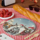 Winterlandschaft mit Schafen und Kabinen Pappteller
