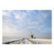 Foto von minimalistischer Sicht auf eine Winterlandschaft in Holland mit einem Pfad und einem Kanal zu einer Windmühle unter einer Schneeschicht mit schönen Wolken bei Sonnenaufgang in der niederländischen Landschaft.