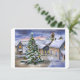 Winterlandschaft mit schneebedecktem Dorf und Weihnachtsbaum. Digitale Malerei.