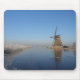 Mousepad mit einer Landschaft in der Landschaft in den Niederlanden im Winter mit einer Windmühle, Eis auf dem Fluss und mattierten Schilfen unter einem klaren blauen Himmel.