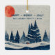 Winterlandschaft Snowy Forest Moon Foto Weihnachtsfeiertage Keramik Ornament. Ruhe schneesichere Winterlandschaft. Glücklich, fröhlich, fröhlich und Ihr Familienname - fügen Sie Ihren Text hinzu.