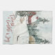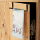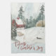 Winterlandschaft Küchentuch, mit "Dingen des Komforts und der Freude" in trendiger Schriftzeichen versehen. Dieses rustikale Landdesign besticht durch eine Aquarelllandschaft mit einer Seehütte, Kiefernbäumen, einer Ente am See, Schnee und Schlitten.