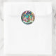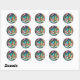 Dieser festliche Aufkleber erfasst die bezaubernde Schönheit der Saison, mit einer malerischen Winterlandschaft mit glitzerndem Schnee, charmanten immergrünen Bäumen, als zeitlosen Weihnachtskranz.