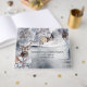 Eine wunderschöne Aquarellbild mit einer Waldlandschaft mit Tannenbäumen und einer Strohhütte in der Entfernung unter schneebedeckten Bergen. Über den silbergrauen Blätter mit orangefarbenen Beeren thront ein Single-schöner Hirsch. Es gibt Vorlagen auf der Wirbelsäule und der Frontabdeckung für Ihre personalisierte Formulierung. Diese sind ideal für Winterhochzeiten und Land- oder Waldveranstaltungen.