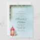 Dieses Design besticht durch Winterelemente mit sanftem und sanftem weißem Schnee und heller und glänzender roter Laterne mit einem Vogel und Kiefer auf einem staubigen blauen Winterhintergrund. Ideal für Ihre Hochzeitsfeiern!