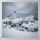 Hochwertige Grafik eines Leuchtturms in einem Winterschneesturm. Dieses Design ist perfekt für diejenigen, die eine dramatische Landschaft und stürmisches Wetter genießen.