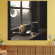 Winterliche Ruhe mit Kaffee und Mond. Leinwanddruck