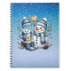 Zauberhafte Winterillustration mit einem lächelnden Schneemann, kariertem Schal, blauem Kakaobecher, Stiefeln und Tannenzweigen. Sanfte blaue Farbpalette, warme Akzente und gemütliche Atmosphäre!