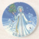 Weich blaue Farbtöne Set die Stimmung für diese herrliche Wintermärche. Sie hält einen kleinen Weihnachtsbaum und der Wind weht über sie schöne Wirbel Schnee und Schneeflocken. Eine Vintage Touch der Fantasie für die Ferienzeit.