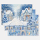 Wintermärchen Schneehäuser Scene Blue und White Geschenkpapier Set