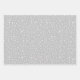 Winterpanda, Frohe Weihnachten und Schneeflocken Packpapier Blätter . Ein Set aus drei Blättern Urlaubspapier. Der erste beinhaltet einen Panda in Winterkleidung, ein Haus, Bäume, Geschenke und Ornamente. Die zweite ein Muster des Wunsches "Frohe Weihnachten" in weiß auf grau und die dritte weiße Schneeflocken auf grau.