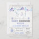 Retro- Einladung mit einem niedlichen Baby Eisbär, schneebedeckten Bergen und frostigen Schneeflocken - ideal für Weihnachten / Winter Babysprinklen / Duschen.