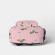 Skiöffnung! Cooles Wintermotiv-Design mit Skifahrern, die Skipisten zwischen schneebedeckten Tannenbäumen in den Alpen abfahren. Freeride-Skifahrer tragen farbenfrohe Vintage Retro-Anzüge und fahren mit Skiern auf einem pastellrosa, schneebedeckten Bergland abwärts.