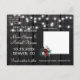 Burgunder Rotwein und Rose aus weißem Pfirsichwein mit Jäger, grünem Blattwerk und weißen, bunten Lichtern auf dunkelbraunem Scheunenholz machen ein schicke Foto Save the Date Hochzeitspostkarte. ++++++++ Einfach mit Bild, Namen und Text personalisieren! +++++++++++ Geeignet für blumengeschmückte Winterlandschaften, Bauernhäuser, Berge, Wunderland oder Weihnachtshochzeiten.