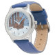 Kinderuhr aus Edelstahl mit blauem Lederarmband