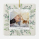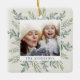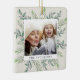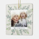 Festig und elegant in hellgrünen Farbtönen, unser Winterweihnachtsgeschmack mit seinem beliebten quadratischen Foto (eins auf jeder Seite), das von den skizzierten botanischen Blätter gerahmt ist. Personalisieren Sie mit Ihrem Familiennamen auf der einen Seite und das Jahr auf der anderen Seite.