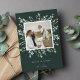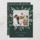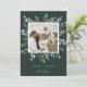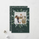Festig und elegant in hellgrünen, grauen und weißen Tönen. Die Wintergarten-Fotokarte bietet Ihnen Ihr beliebtes quadratisches Foto, gerahmt durch grüne, botanische Blätter auf dunkelgrünem Hintergrund. Personalisieren Sie Ihre persönliche Begrüßung (mit "fröhlich & hell" gezeigt) und Ihre Familiensignatur darunter.