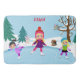 Winterszene personalisiert BATH MAT mit KIDS Eis Skaten, HUND, BIRD UND BUNNY beobachten.